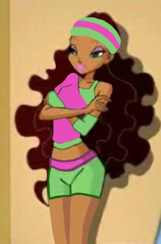 рост средний. Кожа смуглая, чистая. Фигура хорошая, очень аккуратная. У Саммер очень длинные тёмно - каштановые волосы. Глаза большие, небесно - синего цвета. Брови тонкие, на нормальной высоте глаз, под цвет корней волос. Нос небольшой, ровный, слегка вздёрнут кверху. Губы пухлые, ярко - розового цвета. На голове зелёно - розовая бандана. на руках напульсники. Сэм одета в двойной топ и короткие зелёные шорты с розовым поясом. На ногах одеты тяжёлые ботинки
